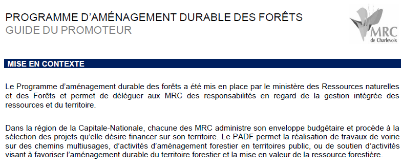 PADF – Formulaire de demande