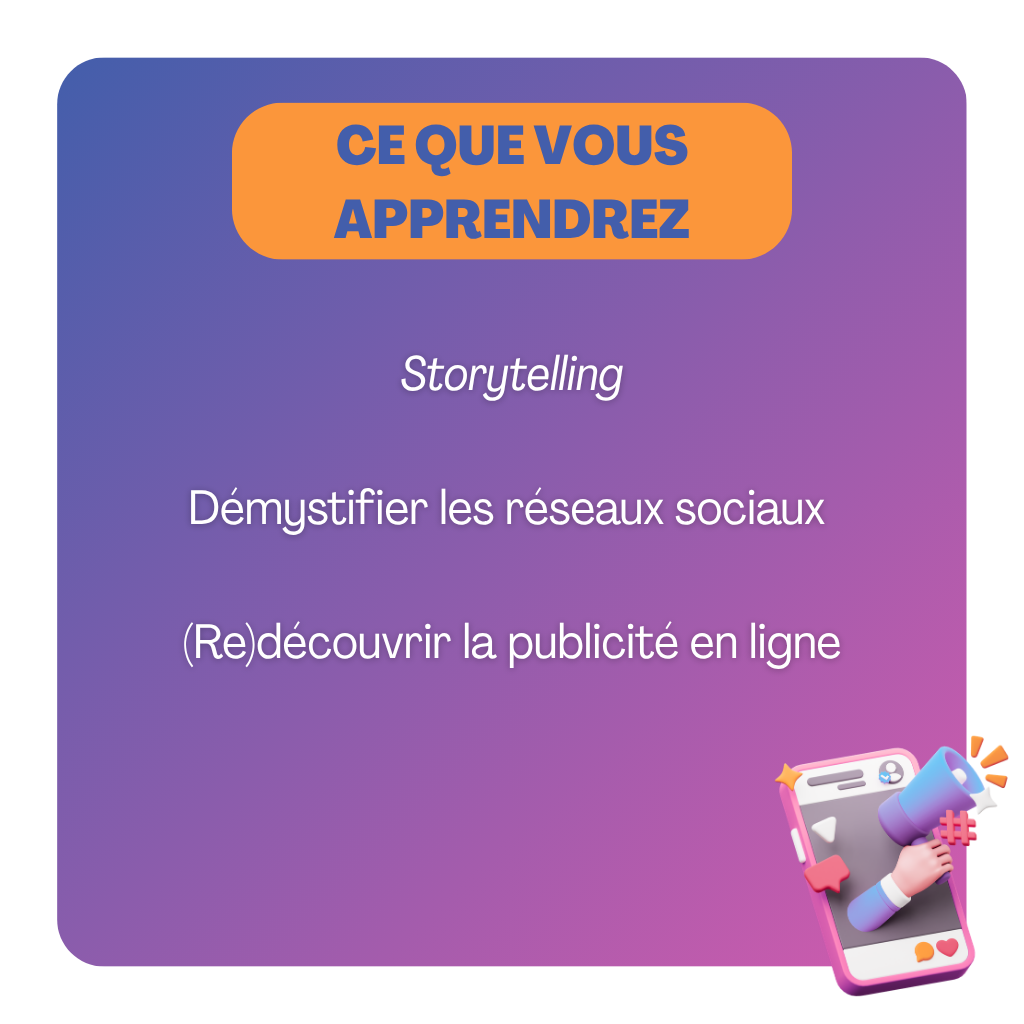 Le parcours s’adresse à des entrepreneurs d’un niveau intermédiaire et évite les approches trop théoriques souvent associées aux webinaires. Il comprendra deux volets, accompagnés d’un soutien individualisé et d’un budget destiné à la création d’une campagne sur les réseaux sociaux pour chaque entreprise.